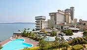 海を望む大浴場が魅力のホテル。およそ1200年もの歴史を持つ和倉温泉の湯に浸かることができます。男性大浴場からは、さえぎるものがない七尾湾の風景を、女性大浴場からは眼下の海原と島山の景色を眺めることができます。それぞれに趣の異なる露天風呂とサウナを完備。食事では、七尾湾や日本海の旬の魚介類を活かした和風会席または能登牛など能登半島の山の幸を使った料理を味わうことができます。客室は、海を一望できる和室や展望風呂を備えた客室、和倉の街並みを眺める和室などさまざまです。