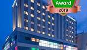 世界初のロボットが働くホテルとしてギネス認定された「変なホテル」。フロントでは光のホログラムが出迎えてくれます。客室は、約160cm幅のベッドを配したダブルや、バス・トイレが独立したツインなどを用意。フランスベッド製マットレスやロフテー製の枕を採用しており、全室でWi-Fiを利用することができます。朝食は、近江町市場より仕入れた日替わりの焼き魚や小鉢料理を味わうことができる和定食です。館内には約1,800冊を揃えた漫画コーナーを設置。敷地内では、プロジェクションマッピングを上映しています。JR「小松駅」東口より徒歩約1分の好立地。小松空港までは車で約10分です。