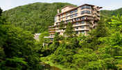 約1,300年の歴史を持つ山中温泉に浸かることができる旅館。3つの貸切露天風呂や広々とした大浴場、プライベートサウナを完備しています。大聖寺川の渓流を望む客室は、10~12.5畳の和室やシモンズ製ベッドを配した和洋室などを用意。露天風呂付きの客室も揃えています。夕食は、専用の個室やレストランにて、のどぐろなどの旬の海の幸や能登牛などを使った会席料理を味わうことができます。朝食は和定食を用意。館内には、渓谷を眺めながら過ごすことができるテラスを併設しています。