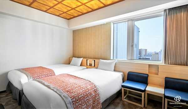 今回は3人で予約。シングルがなかったのでツインを2部屋で予約しましたが、途中1人追加。ホテルに問い合わせ、追加料金支払うことで4人で泊まることができました。メールでのやり取りもすぐ返信してもらえスムーズでした。フロントの方は気さくで親切にしてもらえました。 ツインでベッドはセミダブルで広々して寝心地は良かったです。枕は大きめと低い枕の2個セットしてありました。部屋のスペースは広くないので大きめスーツケースを広げるにはベッドの上になってしまいます。 部屋には館内着がありました。スリッパは使い捨てではありません。アメニティは歯ブラシや綿棒など。粉のお茶だけありました。 冷蔵庫に冷凍機能がなかったためフロントで預かってもらいました。冷凍庫の空きスペース次第なので沢山は難しいかもしれません。 ホテルは西口のロータリーに面していますので駅からはほとんど濡れずに行くことができます。飲食にも困りません。ファミレスもあります。 温泉、バイキング朝食付きです。 温泉は個別のパスワードを渡されますので、それを入力して浴室に入ることができます。ツインで泊まりましたが、同室者とも違うパスワードを渡されました。 朝食は和食、パン、カレーなど種類はそれほど多くないですが簡単に食べるには充分な量でした。仕事関係の方が多いのか、1人で食事をされる方が多く回転も良かったです。 お値段もお手頃で快適でした。
