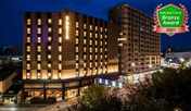 「兼六園」まで徒歩約5分、大正ロマンあふれる優美なクラッシックホテル。「金沢城公園」に隣接し、観光拠点に便利なロケーションです。加賀友禅をしつらえたアートやステンドグラスで彩られ、加賀伝統工芸の九谷焼ランプが配置されたくつろぎの空間が広がっています。全室30㎡以上の客室は、エアウィーヴ製マットレスを採用したツインやシンプルな内装の和室を用意。朝食は、加賀野菜など地元の食材を使用したカレーや金沢おでんなど多彩なメニューをビュッフェ形式にていただくことができます。温泉大浴場やサウナを完備しています。