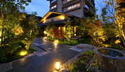 城下町金沢の街並みや凛とした雰囲気が漂い、水と緑に囲まれた自然の安らぎを感じるホテル。季節の風景を望む庭や城を巡る道筋をイメージした回廊などを配しています。客室は、ダブルやツイン、和洋室などさまざま。犀川より汲み上げた地下水を引いた湯屋では、庭園を眺めながら湯に浸かることができます。朝食ビュッフェは、加賀野菜や日本海の幸などを使用した約80種類の和洋メニューが魅力です。JR金沢駅金沢港口より車で約5分、金沢東・金沢西ICより車で約10分です。