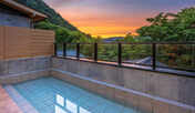 四季折々の自然を望む温泉が魅力の「箱根小涌園 美山楓林」。大浴場と露天風呂では、季節によって表情を変える森林を眺めながら小涌谷温泉に浸かることができます。気兼ねなく入浴できる貸切風呂も完備。客室は、約3名まで利用可能なスタンダードと、グループや家族連れにも便利な約58㎡の広さがあるスーペリアを用意。どちらのタイプも、畳敷きの床にベッドを配した和モダンな空間です。宿泊者は旅館から徒歩約7~8分の「箱根小涌園ユネッサン」を利用できます。