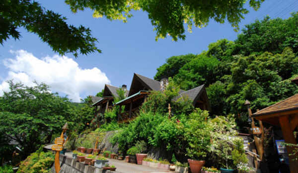 季節ごとの景色を堪能できる全室離れのログハウス。自然に囲まれた5つの温泉施設を併設。趣の異なる3つの貸切露天風呂のほか、大きな陶器風呂と開放感が魅力の野天岩風呂や、ステンドグラスの入ったガラス張りの展望岩風呂で、湯河原温泉の湯を楽しむことができます。夕食は、四季折々の新鮮な地元食材をふんだんに使った和会席です。朝食は、相模湾で獲れたアジの干物を中心とした和定食を味わえます。客室は、全棟一棟建てログハウス。木の温かみを感じながらプライベートな時間を満喫することができます。また、露天風呂付きの客室も揃えています。宿泊施設までは、JR「根府川駅」から送迎を行っています。