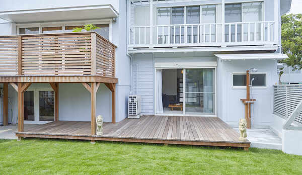 森戸神社の参道に佇むビーチハウス。美しい夕陽を望める森戸海岸まで、徒歩約1分のロケーションです。約8名まで利用できる広々とした室内には、ゆとりあるソファを配したリビングや、アンティーク家具をしつらえたパーティールーム、複数のベッドルームを用意。食器類を揃えたキッチンには、電子レンジやワインクーラーなどを設置しています。ウッドデッキや庭も付いており、芝生の上でBBQを楽しむことも。併設しているダイニングでは、夕食に旬の幸を使った本格的な鉄板フレンチのコース料理を味わうことができます。