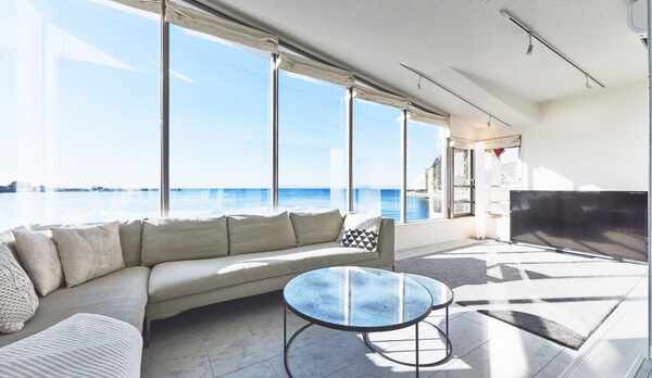 南葉山の海沿いに佇む邸宅。「&SUN Penthouse」は、最上階フロアに位置しています。室内は、木のぬくもりに包まれる開放的な空間。バルコニーと繋がっているオープンエアのリビングでは、目の前に広がる空と海のコントラストや沈む夕陽を眺めながら、ぜいたくな時間を過ごせます。寝具には4台のダブルベッドを用意。調理器具・家電を揃えたキッチンと、ゆとりある広さのバスルームを完備しています。水平線と富士山を望めるバルコニーでは、BBQを楽しむことも。ペットとの宿泊も可能となっています。食事は、徒歩約10分の場所にあるフレンチ鉄板ダイニングコース料理をいただくこともできます。