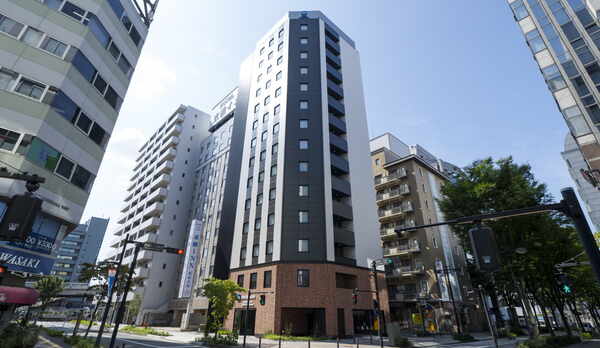 新横浜駅から徒歩5分、交通量の多い道路脇にあるホテル