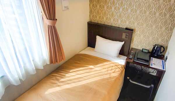 JR新横浜駅からは歩いて5分ぐらい、とても便利な場所です。部屋は狭いです。机はテレビ台の下からスライドして出すタイプで、椅子もスツールが一つあるだけ。朝食はパン、ドリンク、スープ、ゆで卵、ヨーグルト、簡単なサラダ、シリアルなど、700円と言う値段からすれば十分満足。外でモーニングを食べるよりはずっとお得かなと思います。