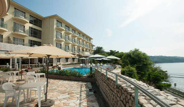相模湾を一望できる丘に佇む、全室オーシャンビューのリゾートホテル。客室は、約37㎡とゆとりある広さのツインやダブルルーム、ジャグジー付きのメゾネットスイート、最上階のジュニアスイートなどがあります。ガラス張りの窓に囲まれた開放的なレストランでは、相模湾の魚介類、静岡の黒毛和牛や湯河原周辺の柑橘類などを使用した季節の創作フレンチをコース料理で堪能することができます。館内には、湯河原温泉を利用した大浴場と、サウナ付きの浴場、屋外プールを完備しています。