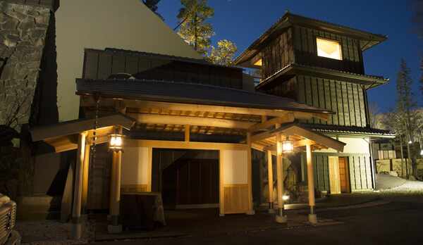 木漏れ日が差す森に囲まれた、季節の食材をふんだんに使用した料理を味わうことができるオーベルジュ。夕食は、自家製粉の手打ちそばやこだわりスープの水炊きをはじめ、旬の食材を使用した創作懐石料理。朝食は、イングリッシュブレックファストをいただくことができます。全室温泉の檜露天風呂付きの客室は、山々を一望できる大きな窓を配したくつろぎの空間です。隣接する施設の大浴場・露天風呂も利用可能。箱根登山鉄道「宮ノ下駅」より送迎バスを運行しています。