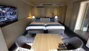 強羅の近くにある28室のみのリゾート型ホテル。 貸切で合宿やウエディングにも利用できるとのことで、とても広々としていて、ラウンジの雰囲気もサービスの方もとても良かったです。 スイートルームは部屋風呂がついていて、とてもゆったりとくつろげ、お部屋も広く大満足。 ラウンジに置いてあるドリンクも24h飲み放題で嬉しかったです。コロナ禍でレストランが完全予約制だったので、やっぱり外食面倒臭いなと思った時に気軽につまめるものがないのが少し残念でしたが、また機会があればぜひ利用したい場所です。