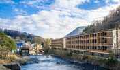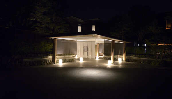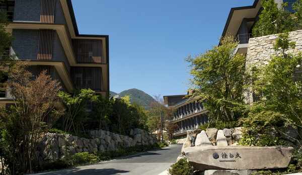 木漏れ日が差す森に囲まれた、季節の食材をふんだんに使用した料理を味わうことができるオーベルジュ。夕食は、自家製粉の手打ちそばやこだわりスープの水炊きをはじめ、旬の食材を使用した創作懐石料理。朝食は、イングリッシュブレックファストをいただくことができます。全室温泉の檜露天風呂付きの客室は、山々を一望できる大きな窓を配したくつろぎの空間です。隣接する施設の大浴場・露天風呂も利用可能。箱根登山鉄道「宮ノ下駅」より送迎バスを運行しています。