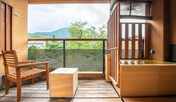 箱根の山々に囲まれた場所に佇む「天翠茶寮」。館内には飛騨高山の木材で作られたソファや竹のランプシェードなど、「和」で彩られた空間を随所に感じることができます。客室は約10タイプあり、露天風呂付でプライベート感を楽しみつつくつろげる客室も。箱根外輪山のひとつである「 明星ヶ岳(みょうじょうがたけ) 」を望める2ヶ所の貸切露天風呂も特徴的です。食事は旬の魚介や野菜など使用した和食を堪能することができます。