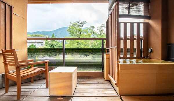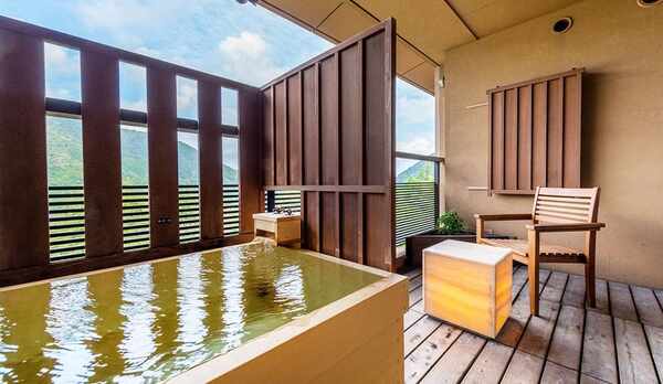 箱根強羅の豊かな自然に囲まれた客室露天風呂が魅力の旅館。全9室の客室すべてに専用の露天風呂を備えており、プライベートな空間で強羅温泉の湯に浸かることができます。夕食には近海で獲れた海の幸や旬の山の幸など、季節の食材を活かした月替わりの創作懐石料理を味わうことができるほか、金目鯛の姿煮やあわびの踊り焼きなどの別注料理を用意。個室食事処にて夕食・朝食をいただくことができます。館内には大浴場を完備。箱根登山鉄道「中強羅駅」より徒歩約5分のロケーションです。