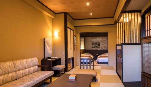 季節の移ろいを五感で味わう「大人の湯宿」がテーマの旅館。門をくぐると豊かな緑と彩り豊かな花々、鯉が泳ぐ池を配した庭が非日常を演出しています。客室は、畳にベッドを備えた和ツインや和フォースをはじめ、ダブルやツインなど多様なタイプを用意。全室に檜を使用した温泉露天風呂を完備しています。館内には、半露天風呂やサウナ付きの大浴場、多様な浴槽が揃う貸切風呂を併設。夕食は、季節の素材をふんだんに使った和食会席で、「進鉢」と「食事」は3つのメニューから選択可能。夜鳴きそばの用意もあり、気軽に小腹を満たせます。