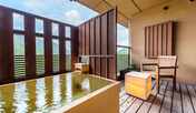 全室露天風呂付のお部屋でゆっくり過ごすことができました。 大浴場も人がほぼおらず私が入った時は貸切状態! お部屋の冷蔵庫の飲み物は無料でところてんも入っています。 旅館の廊下ももちろん、部屋でも香炉があって旅館中白檀のいい香りがします。 ラウンジからの景色は素敵で夜はアルコールを含む飲み物やおかしがサービスで提供されます。 終日コーヒーなども。 旅館なので仕方ないですが、夕食の提供がゆっくりで3時間近くはかかったと思います。 お酒を楽しむ人にいいと思いますが、私たちには少しゆっくり過ぎました…(そういうのを楽しめるように自分がならないといけないのですが)