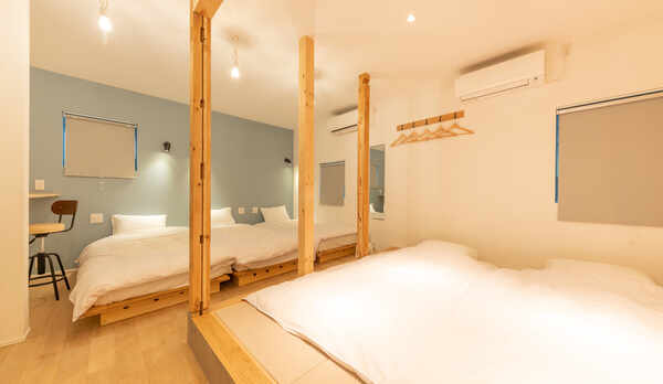 箱根の森のアーチを通り抜けた先に佇む、1日1組限定の貸別荘。ガラス窓の向こうに木々の景色が広がるリビングには、約10名で食事ができる特注テーブルを設置。キッチンや洗濯機を完備しており、BBQを楽しむことができるウッドデッキもあります。室内ではこだわりの豆を使用したコーヒーや、強羅のブリュワリーレストランのクラフトビールを楽しむことも。愛犬との宿泊も可能で、ペットゲージや外の洗い場なども用意しています。敷地内にはテントサウナを併設。ハンモックに揺られたり焚火をしたりと、約668㎡の広々とした貸切空間で思い思いの時間を過ごすことができます。箱根登山鉄道彫刻の森駅より徒歩約8分のロケーション。周辺には、温泉施設や「彫刻の森美術館」などがあります。
