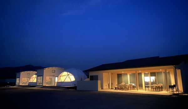 若狭湾に面する海辺の集落「志積」に佇むオーベルジュ。集落内に点在する民宿をリノベーションしており、漁村の暮らしに溶け込むような宿泊を体験できます。目の前に入り江が広がるレストランでは、刻々と移り変わる海景色とともに食事を楽しむことができます。夕食は、若狭湾の鮮魚や旬の地場野菜を使用し、民宿ならではの和食をベースに洋食のエッセンスを織り込んだ創作料理です。朝食は土鍋ご飯や魚のあら汁、七輪であぶる手作りの魚の干物など、漁村らしさを感じるメニューを味わえます。客室は、一棟貸しのように滞在できる「HOUSE SEN」と、民宿の面影が残る全7室の「ROOM KYUBEE」を用意。どちらも海を眺められるロケーションです。