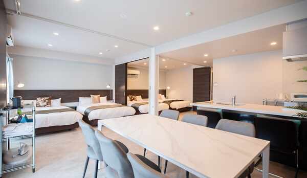 ファミリールーム クイーンベッド2台 キッチン付 禁煙 清掃は有料 連泊の場合は清掃なし