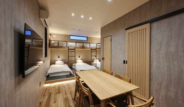 福岡市地下鉄「天神駅」から徒歩約10分の、アパートメントタイプのホテル。全8室の客室は、シックと和モダンが融合した落ち着きある空間。全室に畳敷きのリビングスペースを用意しています。長期滞在にも便利な洗濯機を設置した客室や、食器類や調理器具を備えたキッチン付きの客室などを揃えており、暮らすように滞在することができます。室内には、Wi-Fiやテレビ、空気清浄機を完備。屋台や飲食店が軒を連ねる繁華街「中洲」の中心街まで徒歩約5分と、グルメや観光を楽しめるロケーションです。
