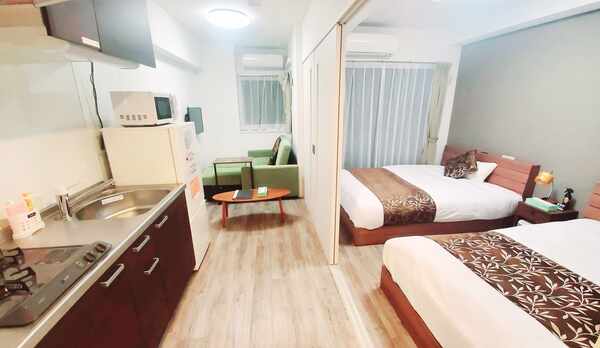 九州帰省時に1泊しました。 マンションの1室のようなホテルです。 5人家族で二部屋、3つベッドがあるのはありがたく、洗濯機や電子レンジもあるので滞在型にも最適です。 こどもたちはとっても気に入ってました。 1万ちょいなのでコスパも素晴らしいです。