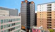地下鉄「渡辺通駅」2番出口より徒歩約4分のホテル。博多織をモチーフとした外観や、大川組子をモチーフにした天井造作など、随所に地元福岡を意識したデザインが施されています。客室は、ダブルやツインなどを用意。クイーンサイズベッドを配した客室や、2段ベッドを配したグループ向けの客室も揃えています。朝食は、博多名物のごぼ天うどんやあご出汁のお茶漬けなど、和食を中心としたビュッフェです。地元コーヒー店のメニューを揃えたカフェ・バーを併設。長期滞在にも便利なコインランドリーを設置しています。