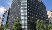 博多駅新幹線口(筑紫口)を背に右、小さな横断歩道を渡って右の肌色の建物です。1階エントランス(遊技場)3階フロント