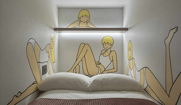 「本の世界を旅するホテル」をコンセプトにした、読書をするための施設や設備が整ったホテル。1階は、「旅」や「ミステリー」を中心とした約4,000冊の書籍を揃えた24時間営業の本屋です。調光可能な照明や手元用のスタンドライト、ソファを全室に配備した客室は、本を読むために快適な空間。ダブルやツインなどのタイプがあり、バスタブとトイレはセパレート仕様です。朝食は、サラダや焼き立てのクロワッサンを使用したサンドイッチなどのセットメニュー。ホテルは地下鉄空港線「赤坂駅」から徒歩約6分です。