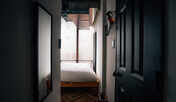 博多中州に佇む、隠れ家のような宿泊施設。わずか3室の客室は、メゾネットタイプ。全室に濃灰色を基調としたシックな檜風呂を完備しており、木の香りに包まれながら入浴することができます。小石原焼の食器や調理家電を揃えたキッチンや、洗濯機付きの「博多」や「玄海」、ダイニングテーブルやIHコンロを備えた50㎡以上のゆとりある「古門戸」を用意。四季折々の坪庭を眺めることができる客室もあります。寝具はエアウィーヴ製マットレスを採用。室内には、Wi-Fiや空気清浄機を設置しています。宿泊施設までは、 福岡市地下鉄「中洲川端駅」7番出口より徒歩約5分です。