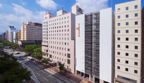 JR「博多駅」より徒歩約7分。博多織をモチーフにした外観が特徴的なホテル。和モダンな雰囲気が広がる客室は、ダブルやツインのほか、畳の小上がりを配した和洋室などを用意。全室に寝心地にこだわったシモンズ製ベッドを採用。窓からやわらかな光が差し込む心地よい空間で、くつろぎの時間を過ごすことができます。朝食は、九州の食材をふんだんに使用した、多彩な和洋メニューが並ぶビュッフェです。館内には、福岡ならではの「鳥瞰図」や吊るし飾り「さげもん」をデザインに取り入れた大浴場を完備。敷地内には、約39台収容可能な立体駐車場を併設しています。最寄りのコンビニまで徒歩約1分です。