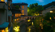 福岡県と大分県の県境に位置する原鶴温泉。博多の奥座敷と称される、静かな雰囲気が感じられる温泉地に佇む旅館です。すべての客室に専用露天風呂を完備。プライベートな空間で温泉を楽しむことができます。夜間にはライティングデザインが施された露天風呂が、癒やしのひとときを演出してくれます。また、貸し切りの家族風呂も備えており、大切な人と心安らぐ時間を過ごすことができます。客室は、ジャパニーズモダンスタイルでデザインされ、自然素材を使用したシンプルで和テイストなこだわりのインテリアを備えています。アクセスは、大分自動車道「杷木IC」から車で約5分、「杷木バス停」からタクシーで約5分の場所に位置しています。