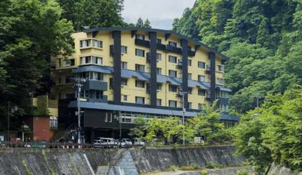 飯坂駅前の温泉街から摺上川を登って行った所に奥飯坂温泉郷があり、川べりの宿です。 犬専用でなく、1階に犬の泊まれる部屋があります。 5階建ての建物ですが、今は家族経営されています。 泉質が素晴らしくて、透明だけど、熱めで肌にここちよい刺激があります。痛みに効きそう。 手造り料理がとても美味しくて、食べきれない量が出ます。 若旦那は日本酒ソムリエ、若女将は美人で優しい方です。 いい宿なのに、泊まり客が少なかったです。 日帰り入浴だけでも価値がある泉質だと思いました。