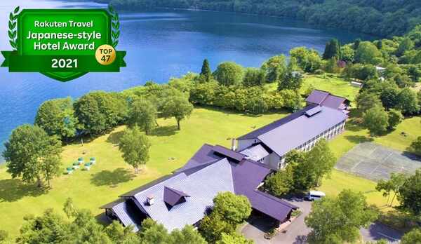 十和田湖のほとりに建ち、自然豊かな景色を眺めながら過ごすことができるリゾートホテル。全室シモンズ製ベッドを採用したツインの客室は、湖畔に面した客室と季節のうつろいを感じる山側の客室を用意。食事は、レイクビューのレストランにて、フレンチのコース料理が味わえる夕食と和洋定食の朝食をいただくことができます。敷地内には、芝生の庭を見渡す樹齢約100年の南部赤松を使用した屋根をしつらえた温泉露天風呂を完備。JRバス「十和田湖駅」より送迎バスを運行しています。「奥入瀬渓流」まで車で約30分です。