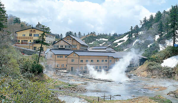 約300年前より湯治場として親しまれてきたと伝えられる後生掛温泉に佇む旅館「八幡平後生掛温泉」。山小屋をモチーフにした大浴場は、後生掛名物の箱蒸風呂をはじめ、泥風呂、気泡が噴き出す火山風呂、四季折々の景色を望む露天風呂など7つの湯を用意。客室は、和室やモダンなデザインの和洋室、シングルを用意。夕食は、秋田県の郷土料理「きりたんぽ」や山菜の天ぷらなどを、朝食は羽釜で炊いたご飯や焼き魚などの和食膳をいただくことができます。館内には、カフェや土産品が揃う売店を併設しています。