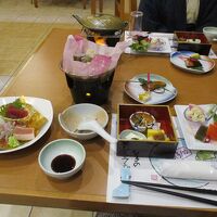 夫婦二人で夕食・朝食付きで1泊利用しました。 コロナ影響で県外移動自粛制限もあり、宿泊者はかなり少なかったです。 部屋は和洋室でとても広かったです。 部屋の洗面所・トイレ共に水回りは問題ありません。 施設自体は古いと思いますが、 管理はよく行き届いていると思います。 露天風呂は景色が見える夕刻時に入りました。 宿泊者が少ないわりには、男性側で私以外5~6人居ました。 温泉だけ入りにくる人もいるようですので、 夜間に入ればもっと人は少ないかと思います。 但し、明るいうちに景色を見ながら入るのもよいかと思います。 夕食は、お刺身盛合せ、鰆の照焼き、豆乳鍋、牛肉陶板焼き、 炊込み御飯等のコースを日本酒と共に美味しくいただきました。 お酒は別料金になります。 朝食も、金目鯛のアラ煮やお刺身など朝から豪華にいただきました。 食事処は、小上がり席の半個室状態で 他の宿泊客と密接しないように配慮されていました。 部屋からは海は見えますが、結構距離があります。 朝日・夕日がきれいに見えるかと期待しましたが、 角度が悪く部屋からは見えず残念でした。 ホテルの前では、ペンギン5頭がお迎え・お見送りしてくれました。 とてもかわいいのでたくさん写真を撮りました。 しかし、閉園した犬吠埼マリンパークからの出張レンタルなのでしょうか、 お世話していた方も同パークの飼育員なのでしょうか、 勝手に想像して、少しでも人に見てもらって喜んでもらおうと 努力しているのだなと感じました。 いずれにしても、コスパもよく食事の豪華さにとても満足しました。 また利用したいと思います。