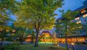 緑豊かな森に囲まれた、2種類の温泉を楽しめるホテル。開放的な露天風呂では、柔らかな湯ざわりの「わたの湯」に、広々とした大浴場では、湯量豊富な「万代鉱の湯」につかることができます。客室は、洗練されたナチュラルモダンなデザイン。セミダブルベッドを2台配したツインのほか、広さ66㎡の広々としたメゾネットルームや、温泉半露天風呂付きの客室などを揃えています。夕食は、鉄板焼きを中心に、ハーブをアクセントにした彩り豊かな創作料理を味わえます。朝食は、地元食材を活かした和食です。館内には、森をイメージしたインテリアを設えたライブラリーコーナーを併設。はちみつを使用したウェルカムフードやドリンクを用意しています。ホテルまでは、草津温泉バスターミナルから徒歩約15分です。