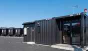 コンテナを部屋として利用して、チェーン展開している。中に入れば手狭なビジネスホテルといったところ。 座ったり寝たりしている時に、もう1人が歩くと部屋が揺れるので最初は震度1あるかないかの地震かと思ったが、すぐ慣れる。 冷凍庫がちゃんとわかれている冷蔵庫もあるし、電子レンジ、ポット、ドライヤーがある。 大浴場などはないが、ユニットバスにボディソープ、シャンプー、コンディショナー備付け。トイレはウォシュレット。もちろんWiFiもある。 そしてデスク前の椅子はマッサージチェア! フロント棟にはコーヒーメーカーがあり、お茶やコーヒーを自由に飲める(深夜はお休み)。カレー、ピラフなどから選べる冷凍の軽食も付いており、1泊2名18,000円。