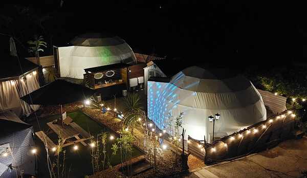 自然あふれる森の中に広がるアウトドアリゾート施設。客室は、北欧風のインテリアをしつらえた温かみのある空間です。山頂からの眺望を楽しめるスカイキャビンや、森に囲まれたフォレストキャビン、セミダブルベッドやソファベッドを配したテントタイプなど、全4タイプの客室を揃えています。メインキャビンにはシャワールームを完備しています。夕食は、旬の食材を使用したBBQコースを用意。敷地内には、自然の中で地ビールやワインなどを味わえるアウトドアバーやプライベートテラスを併設。ファイヤープレイスでは、火の揺らぎを眺めながら癒やしの時間を過ごすことができます。