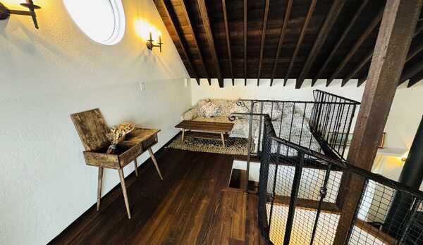 農村地域にある敷地内の古民家は一棟貸しのかたちでの宿泊になりますので、家族連れや静かな環境でのんびりしたい人におすすめです。私たちが泊まったのは築90年という蔵で、ほかにも茶室であった離れなどがありました。内装は現代風にリフォームしてあり快適に過ごせますが、上を見上げると太い梁には棟梁の名前が墨書してあり、歴史を感じました。