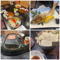 日本秘湯を守る会のお宿です。 全部で7部屋しかないのに、雰囲気が違う2種のお風呂、檜風呂と岩風呂の温泉は広かったです。 男女入れ替わるので、夫婦それぞれ、両方入ることができました。 湯葉や鮎の塩焼き、茶碗蒸し、自家製のお味噌が載ったきび餅、美味しかったな~ イワナの骨酒を頼んじゃいました。