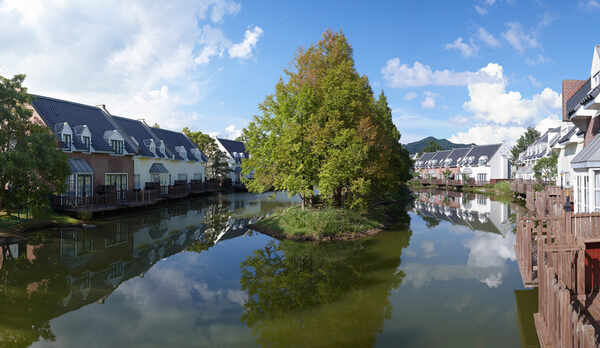 「ハウステンボス」の静かな森で、暮らすように滞在を楽しむことができるコテージタイプのホテル。2階建てのコテージは、湖の中の島に建つ「レイクアイランドヴィラ」や、木々に囲まれた湖畔の「レイクサイドヴィラ」、愛犬と一緒に宿泊できる「ドッグヴィラ」を用意。木のぬくもりを感じる家具を配した心地よい空間で、優雅なひと時を過ごすことができます。それぞれの室内には、洗面スペースを設けた2つの寝室や、広々としたリビング、湖に面したテラスなどを備えています。滞在中は、「ハウステンボス温泉」の大浴場やサウナなどを利用できます。