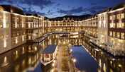 オランダ・アムステルダム中央駅を模した、異国情緒漂う建物が特徴的な「ホテルオークラJRハウステンボス」。ホテル宿泊者専用のカナルクルーザーが発着するハーバーが併設されており、運河を渡って出入国できます。ハウステンボス側の客室からは、ヨーロッパ風の街並みや大村湾を、駅側の客室からは緑豊かな山々や、行き交う列車を眺めることができます。和風露天風呂や洋風大浴場でひと息つくことも。天井高の開放的なカフェテラスでは、洋食料理や長崎名物をはじめとする多種多様な朝食ビュッフェをいただけます。
