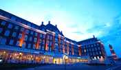 「ハウステンボス」のテーマパークの中心部に位置するホテル。アムステルダム広場まで徒歩約1分というロケーションが魅力です。ヨーロッパ風の街並みを早朝に眺める、非日常体験を楽しむこともできます。客室は、全室広さ45㎡以上のゆとりある仕様です。アムステルダム広場を望むパークビューの客室と、ヨットハーバーに面したオーシャンビューの客室を用意。キャラクターに彩られたコンセプトルームや、小花柄の壁紙が華やかな雰囲気を演出するデラックスデザイナールームも揃えています。食事はパーク内を見渡せるレストランにて、長崎や九州の厳選食材を使用したフレンチベースの和洋メニューを、ビュッフェ形式で味わうことができます。館内には、隠れ家風のワインサロンを併設しています。