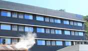 小浜温泉病院前ですが、メイン通りから一本裏に入った道にあります。 元特老施設の再利用で、共用部が広々しています。客室も広く、快適に過ごせました。 温泉大浴場もあります。夕日がきれいに見える角度なのですが、ちょうど温泉病院と重なり見れないのが残念でした。