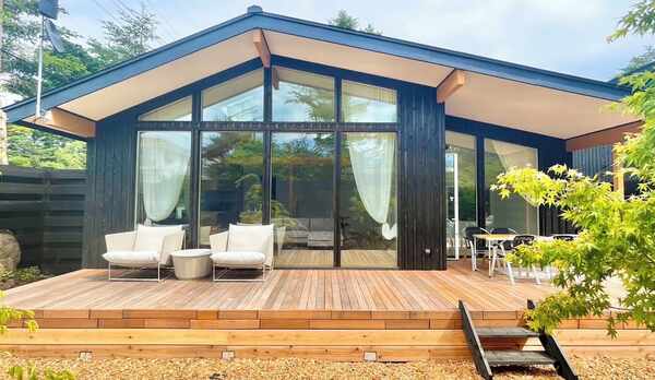 軽井沢に建つラグジュアリーなハウスヴィラ。趣向を凝らした6タイプを揃えており、全棟に薪ストーブや大型プロジェクターを用意した開放的なリビングダイニングがあります。約12名まで宿泊が可能な広々とした「Villa A」や、吹き抜けの天井が開放感を演出する「Villa B」、足湯をしつらえたウッドデッキ付きの「足湯棟」などを用意。専用の庭が付いたヴィラもあり、愛犬との滞在を楽しむこともできます。しなの鉄道信濃追分駅より車で約5分、碓氷軽井沢ICより車で約20分のロケーションです。