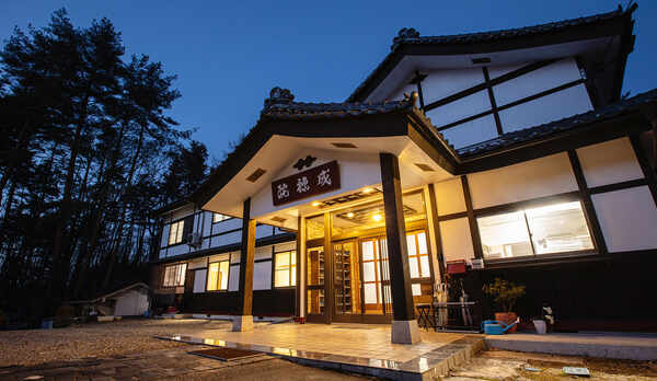 安曇野の雄大な自然に囲まれた閑静な里に佇む旅館。新潟より移築した古民家を改装した館内は、囲炉裏の煙によって黒ずんだ柱や梁、障子戸など懐かしさを感じる空間が広がっています。館内には、ヒバの露天風呂や檜風呂を設えた内湯など、全3種類の貸切可能な家族風呂を完備。プライベートな空間で自然林を眺めながら温泉に浸かることができます。客室は、古民家風の洋室やキッチン付きの和室、茶室の趣が残る離れなどを用意。食事は、地元の野菜や季節の食材を活かしたメニューを、古伊万里をはじめ、唐津焼や備前焼などのこだわりの器でいただくことができます。敷地内には、木々のざわめきや鳥のさえずりを聞きながらくつろげるテラスを備えています。