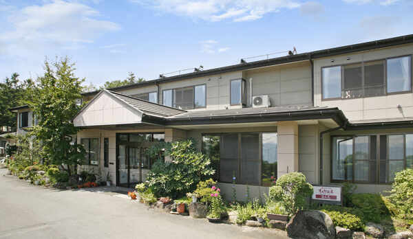 周辺に何もない丘にある旅館で、冷蔵庫・バス・トイレ・洗面所は共同です。 廊下には、セルフで飲めるコーヒーやお茶があります。 アメニティはタオルと歯ブラシだけで、浴衣は有料です。 浴場はグループ毎の貸切で、朝は入れません。 客室は質素な感じですが、食事は宿泊料金の割に豪華です。 夕食には牛すき焼きや馬刺し・ニジマスの塩焼き・フルーツなどが出て、ボリューム満点でおいしかったです。