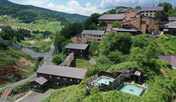 緑がかった硫黄泉とホタルが舞う高原のホテル
