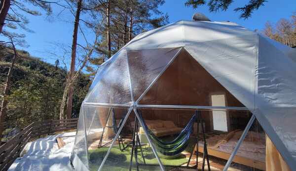 緑豊かな自然に囲まれた売木村に佇む和風旅館。庭園内に配置された庭園露天風呂や、野趣あふれる岩造りの露天風呂を併設。四季折々の景色や満天の星を眺めながら、温泉に浸かることができます。夕食は、信州牛をはじめ、地元の川魚や旬の地場野菜、イノシシ肉など、信州の食材をふんだんに使用した、囲炉裏で調理するコース料理を堪能できます。朝食は、湯豆腐を中心とした滋味深い和食です。落ち着いた雰囲気の客室は、和室と洋室を用意。館内には、囲炉裏付きの宴会場や卓球台を備えたカラオケバー、お土産処などを完備しています。敷地内には、グランピング用のドームテントや天体観測を楽しめる星見台があります。