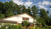 車がないといけない山の中にあります。駐車場からペンションは階段、中も階段を上がります。ウエルカムドリンクに牛乳・リンゴジュースが頂けます。 洗面・トイレは部屋にありますが、お風呂は共同24時間空いている時間に入れます。 夕食18:30~とても美味しかったです。特にパイ包みのシチューが。 朝食は7:30~8:30 部屋クーラーはなかったですが涼しかったです。冷凍庫付き冷蔵庫が廊下にあって自由に使えました。 難点は壁が薄いので声が聞こえることでした。
